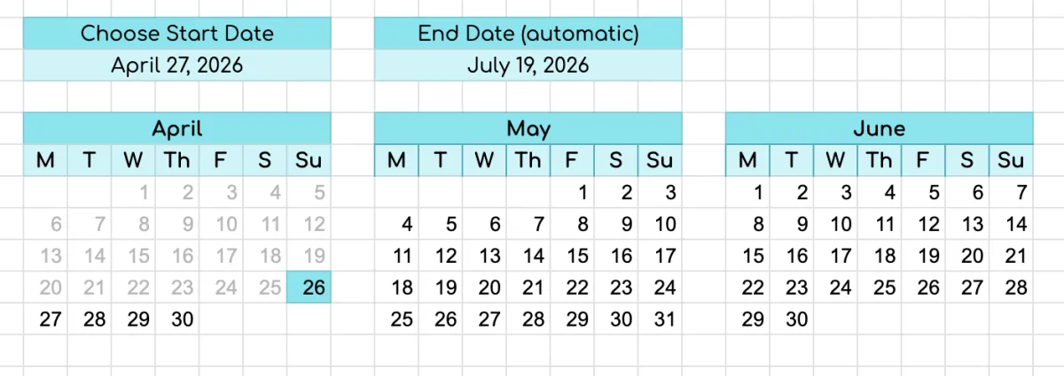 The planner comes in two versions: teal and rainbow. You get both versions. Here is a sneak preview of what you get: